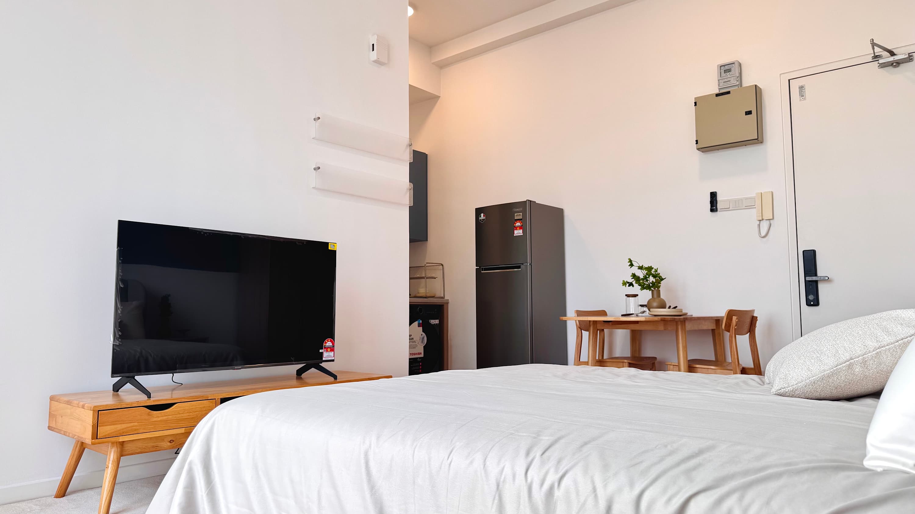 • Queen bed with hotel-quality linens 🛏️