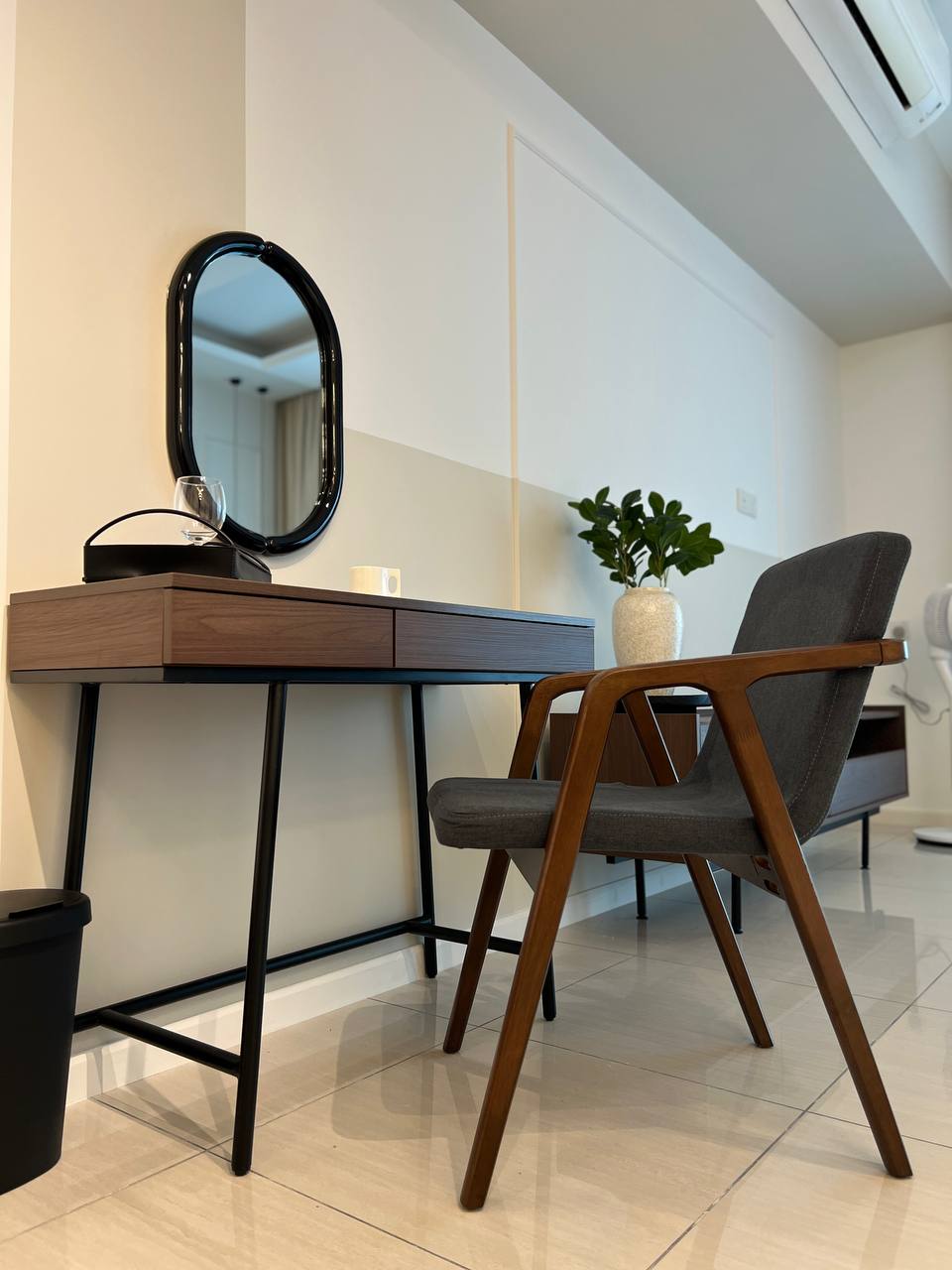 Step inside our Relaxing Studio Retreat and discover a thoughtfully designed space perfect for relaxation. The main living area features a comfortable queen-size bed, ensuring a restful night's sleep. The open-plan layout seamlessly integrates a cozy seating area, ideal for unwinding after a day of exploring Kuala Lumpur. The modern bathroom provides all the essentials, with accessible-height features for added convenience. This studio apartment is designed with your comfort in mind, offering a peaceful haven in the heart of Sri Hartamas. Experience a blend of style and functionality in this inviting retreat.